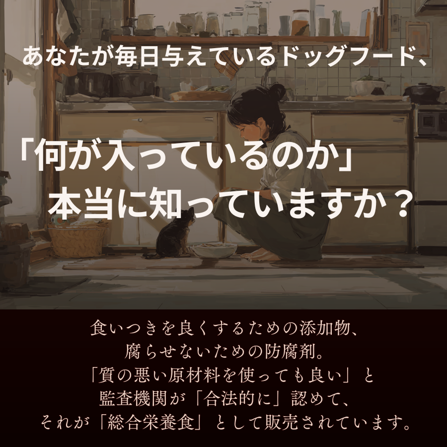 保存料・着色料・人工添加物は一切不使用。愛犬の体に入るものだから妥協しません。